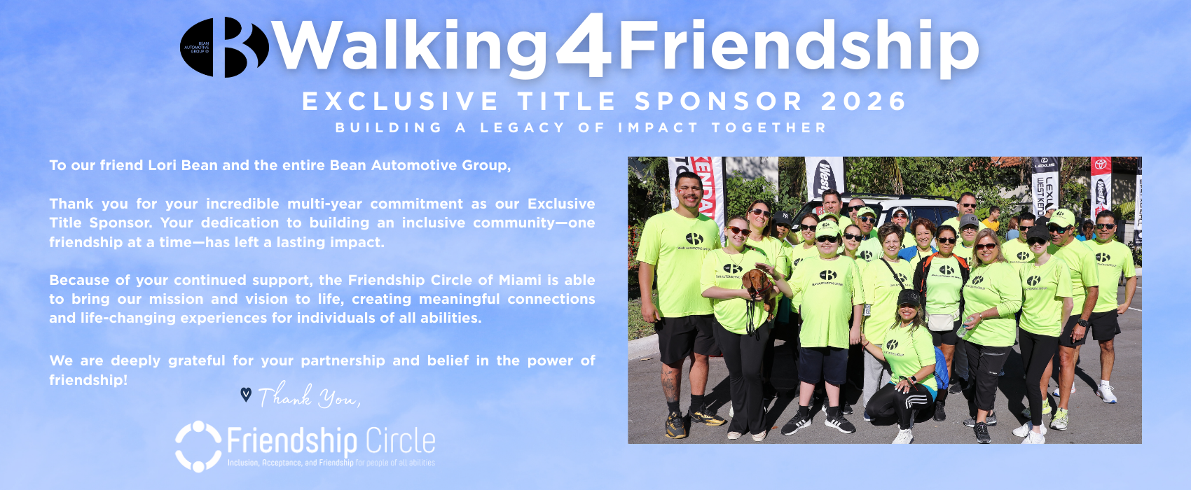 One of the most powerful ways to partner with us is by sponsoring our signature event: Walking4Friendship 2026. Supporting this event is more than just sponsorship—it’s about taking meaningful steps to build an inclusive community where everyone belongs.