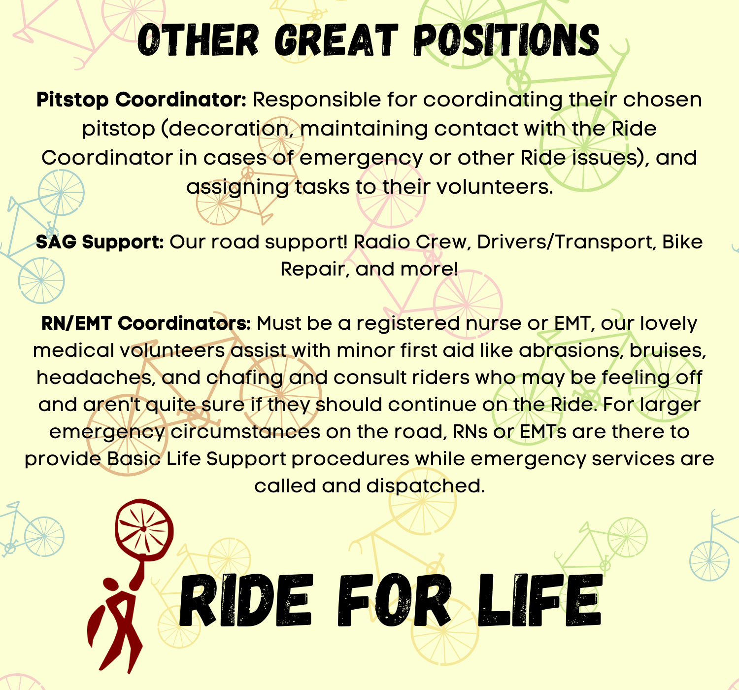 The Ride for Life needs around 300 volunteers on Ride Day to help assist Riders as they travel through our route's seven fantastic pitstops!