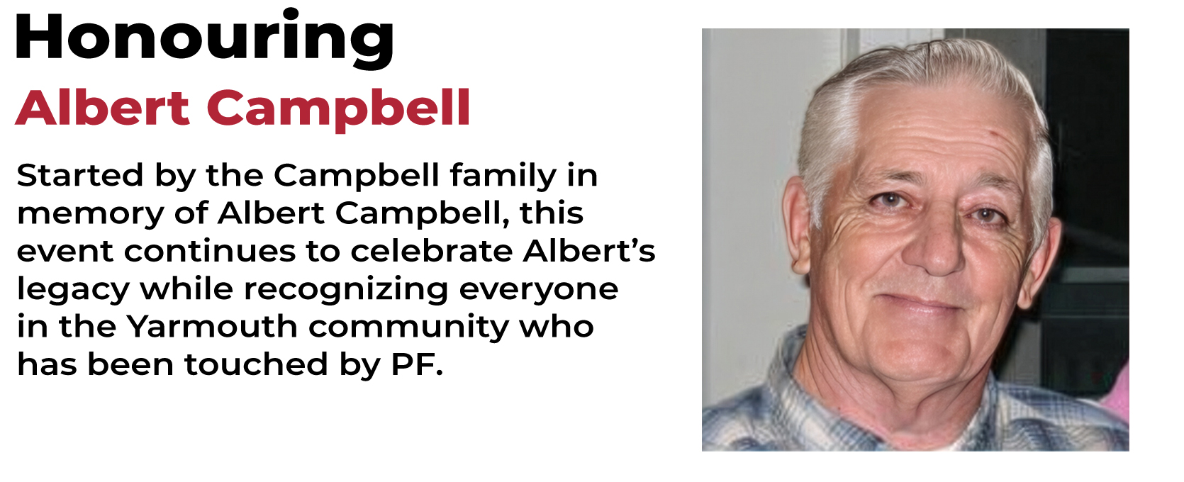 Join us for the 3rd CPFF Yarmouth Walk for PF at Frost Park as we gather once again to walk in honour of loved ones, stand beside those living with pulmonary fibrosis, and continue building a stronger, more connected community.