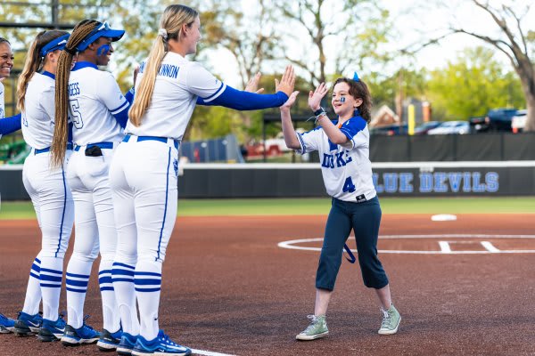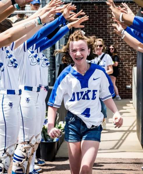 In August of 2022, Harper was matched with the Duke Softball Team. She was welcomed into team activities with open arms – from throwing celebratory first pitches, to hanging in the dugout, and even ACC championship celebrations. Duke Softball provided Harper with an extended support network as she reached each of her treatment milestones.