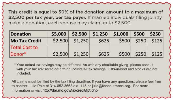 Those donors who make a monetary contribution of $250 or more during the canned food drive will receive a tax credit form in the mail from Food Outreach in February 2021. The form will be mailed to the address provided at registration. More information can be found at: