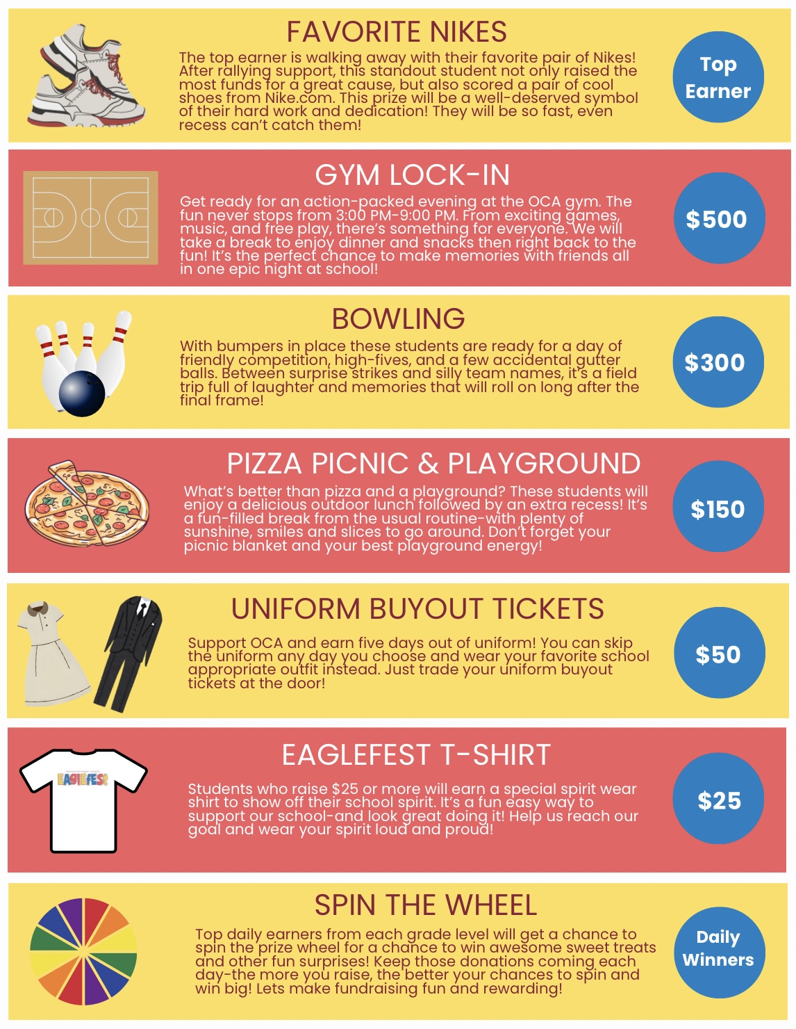 This campaign is only possible thanks to our incredible students! To show our gratitude for all their hard work, the PTO is excited to announce some fantastic prizes and special experiences for the students that meet these fundraising benchmarks. Good luck!