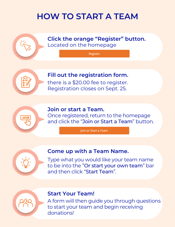 Follow the Steps Below to Register yourself as a participant of the Cancer Walk and then Join or Start a Team to begin Fundraising!